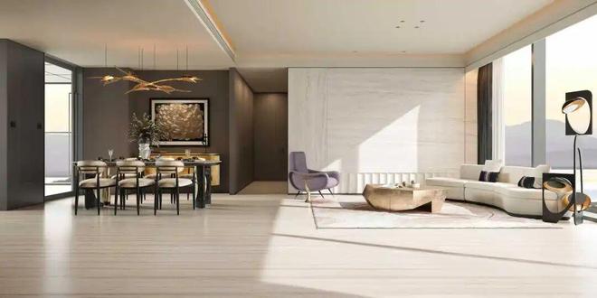主力产品为建面约213–571㎡的大平层,其中213㎡四房是当前主推户型。室内层高约3.5米,LDKT一体化布局打破传统客厅边界——餐厅旁设独立茶台,厨房开放但配有隐藏式推拉门,兼顾互动与油烟隔离。玄关采用双动线设计:主人归家直入私密区,访客或家政人员则从另一侧进入公共区,避免穿行干扰。部分户型还预留超60㎡可变空间,未来可灵活改造为书房、健身房甚至第二客厅。