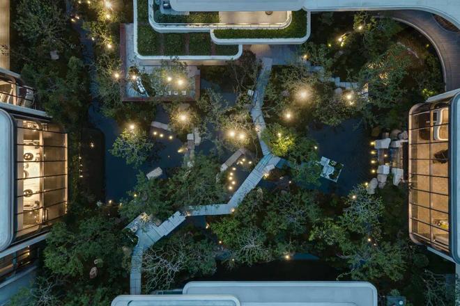 做这个楼盘时,招商蛇口有一个很朴素的想法:既然川西是成都人周末度假的「后花园」,那么就把川西秘境「搬」到市中心。于是,你在这里仿佛看到的就是松坪沟的山谷、牟尼沟的瀑布、孟屯河谷的溪流、甲尔猛措的苔藓……他们用这样一座川西秘境一般的下沉式庭院,开启了一个万物涌现的新世界。当你漫步其中,你就更加明白:我们的居住方式正在被重新定义。