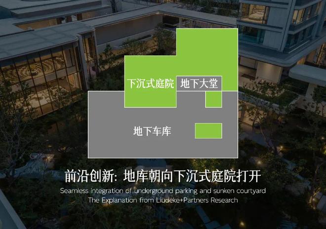 他们是把下沉式庭院切出来一小块,把阳光和绿意引入地库,当你开进这样的地库,你的心情都会变得更加晴朗。这是「地下车库与下沉式庭院一体化设计」教科书级的做法。现阶段新一代楼盘「卷」大门的浪潮已经接近尾声,下一步,应该开始「卷」的关键空间之一就是:把地下车库向下沉式庭院打开。