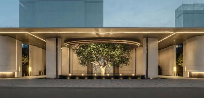 你在大门里看到的那一列树阵,在春天会开出形似风铃的金黄花朵,这是用物候变化带给你更细腻的归家感受——其实,它们是从地下车库长上来的。